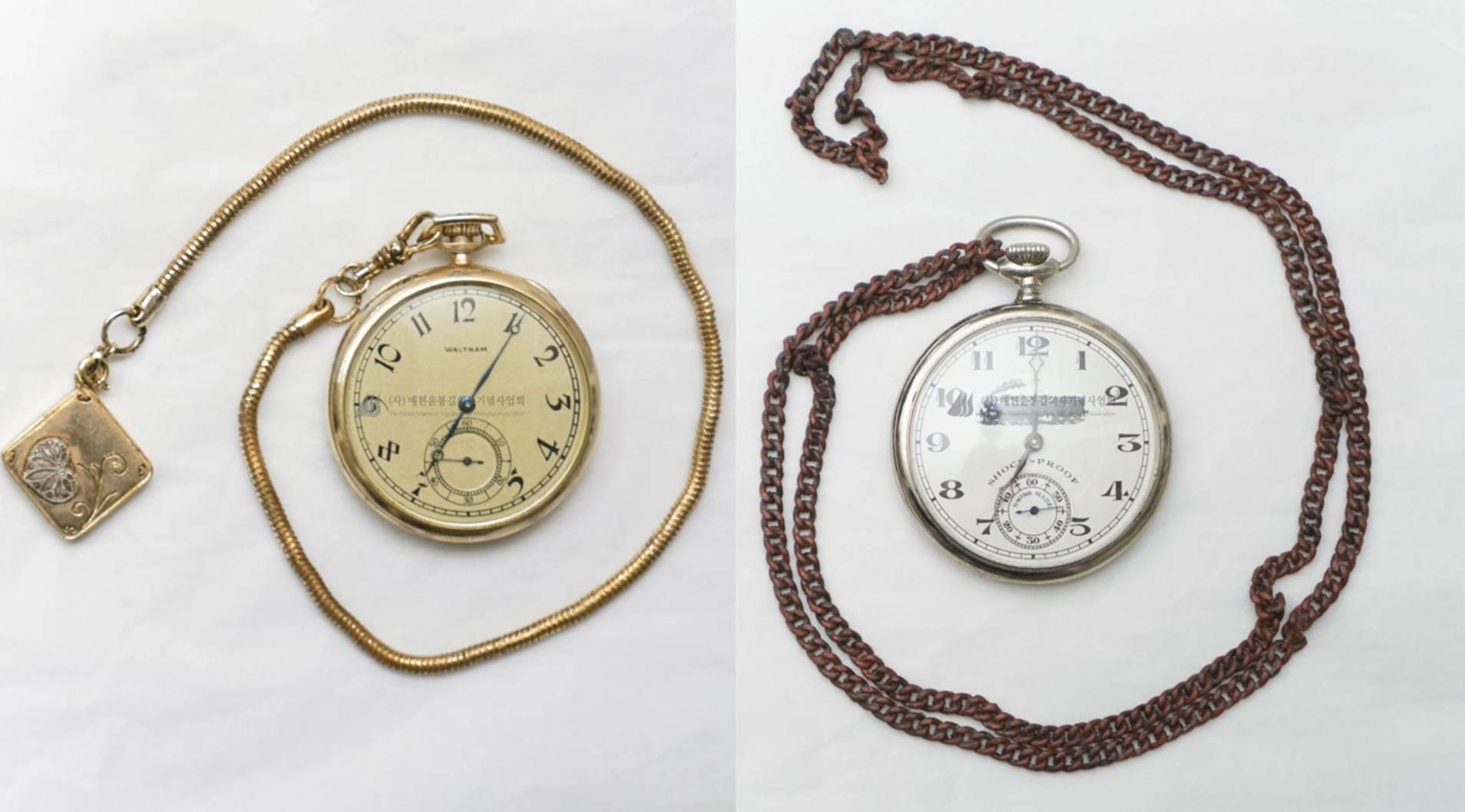 그래서 윤봉길 의사 기념관에는 김구 선생님 시계가 전시되어 있고요. 김구 선생 기념관에는 윤봉길 의사 시계가 전시되어 있다고 합니다.