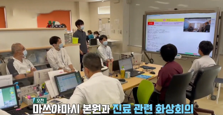 위의 사진이 진료 관련 화상회의를 하고 계신 의사 선생님들 모습입니다. 오전에는 저렇게 회의를 하시고 오후에 어르신 집에 방문해 재택의료를 하십니다.