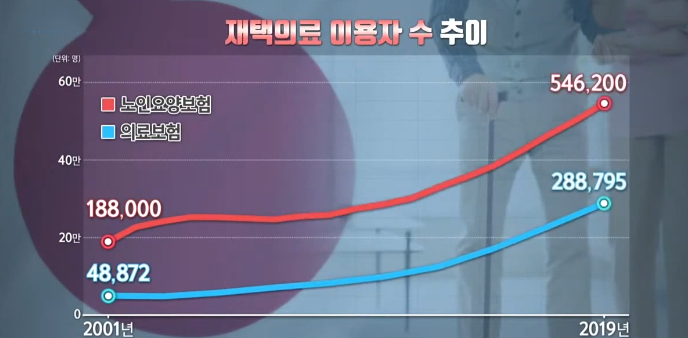 위의 그래프에서 볼 수 있는 것처럼 지난 10년간 일본에서는 재택의료 이용자 수가 2배 이상 증가추세에 있습니다.