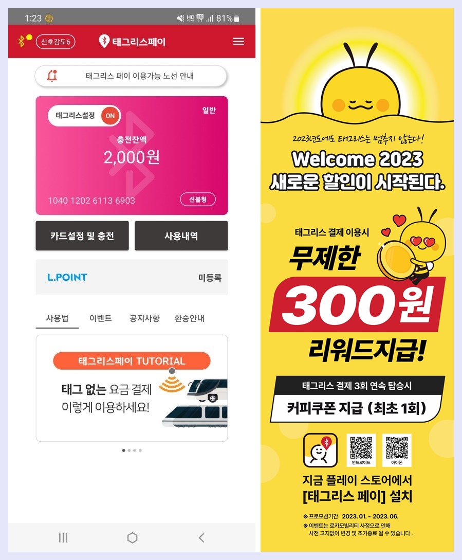 이상 2023년 1월 2일부터 경기도 전체 광역버스를 태그리스 버스로 운영한다는 내용의 포스팅을 하였습니다. 저러면 블루투스를 켜놔야 하겠네요. 저는 광역버스 탈 일이 별로 없지만 자주 타시는 분들은 태그리스를 이용할지 생각해보셔도 좋을듯하네요. 코로나 예방에는 효과 있을 것으로 생각합니다. 행복하세요!!