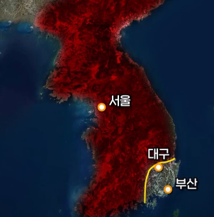 위의 빨간색 부분이 당시 북한 점령지역이고요. 한국군은 낙동강을 기준으로 남쪽 지역만 확보한 상황입니다.