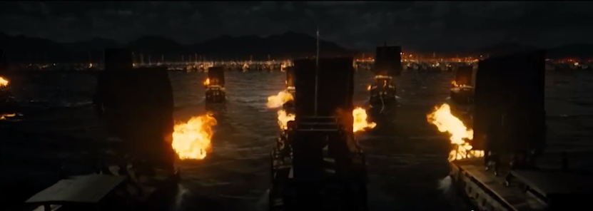 위의 스샷은 손권 부대가 자기네 배에 풀과 기름을 넣고 불을 붙인 다음 조조 배들에게 돌진시키는 장면입니다.