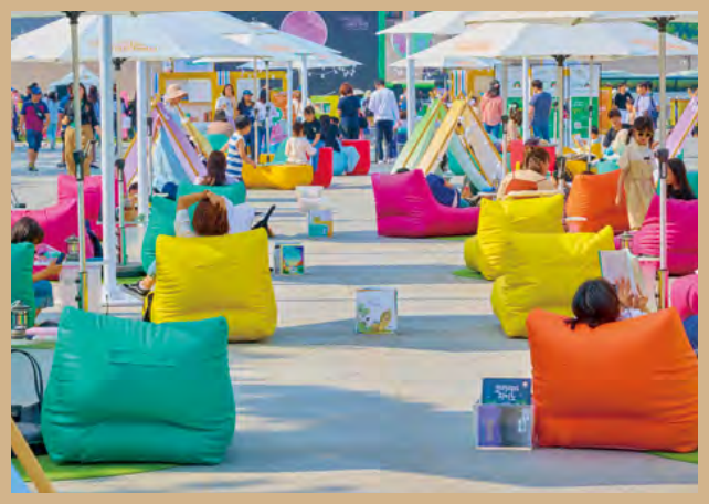 서울광장 전체가 도서관으로 변신했습니다. 광장 곳곳에 마련된 서가에는 ‘[원작]을 봄’, ‘[취향]을 만남’, ‘[건강]을 채움’등 11개 주제로 큐레이션 된 책 5,000여 권이 비치되어 있습니다. 원하는 책을 골라 드넓은 광장에 설치된 빈백에 누워 여유롭게 읽을 수 있습니다. 아이들을 위한 창의 놀이터, 체험 행사가 진행되는 팝업 존도 인기 만점입니다. 로컬 푸드 판매 부스 ‘동생마켓 로컬푸드’에서는 지역 농수특산물도 만나볼 수 있습니다. 서울 야외도서관 홈페이지 회원이라면 누구나 돗자리, 우산, 담요 등을 대여할 수 있으며, 야간 운영 기간에는 북 라이트까지 빌릴 수 있습니다.