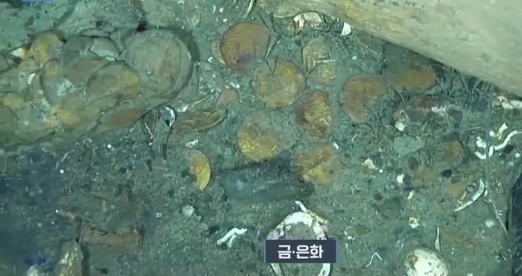 위의 사진처럼 금, 은화가 보이고, 중국산 도자기, 대포 등이 보였습니다.
