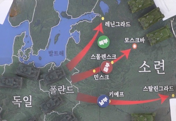 위의 그림같이 독일군은 소련으로 진격해 들어갔습니다.