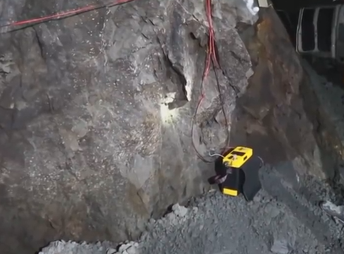위에 보이시는 노란색이 발파 장치인데요. 저것의 버튼을 누르면 설치한 화약들이 폭파하는 것입니다. 하루에 8 ~ 10번 정도 이런 발파 작업을 한다고 합니다.