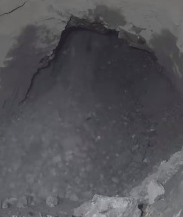 발파를 하면 위의 사진처럼 채광석이 흙처럼 많이 부서져 캐내기 좋은 형태가 됩니다.