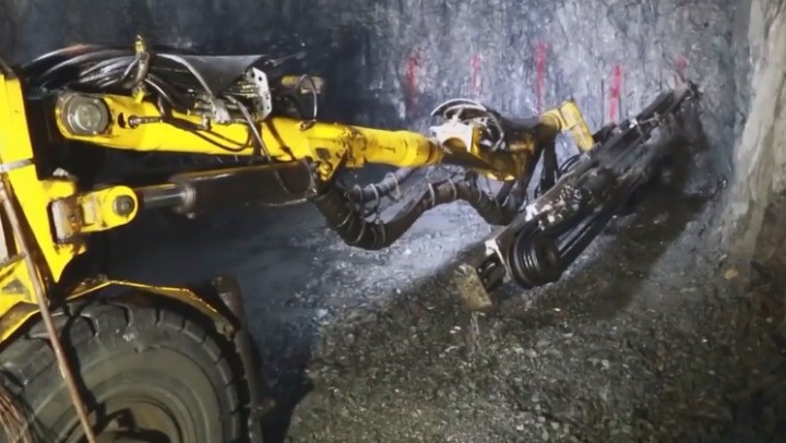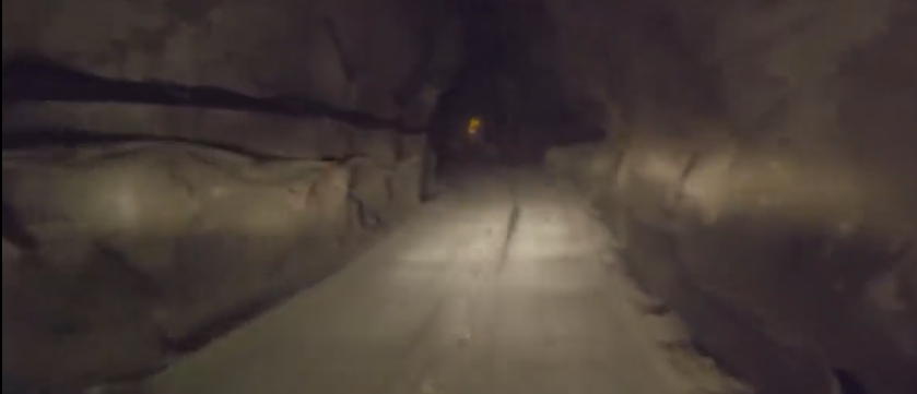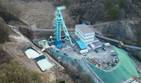 위의 사진이 지하 갱도로 들어가는 모습인데요. 왼쪽에 선이 전기하고, 물이 공급되는 관입니다. 장비를 돌리기 위해서는 전기가 필요하고요. 드릴로 구멍을 뚫을 때 열이 너무 많이 발생하기 때문에 열을 낮추기 위해 물도 공급해야 합니다.