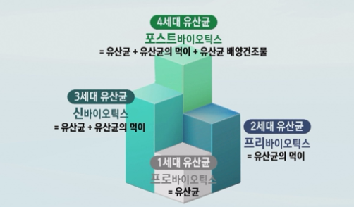 4세대 유산균은 포스트바이오틱스라고 해서 유산균 + 유산균 먹이 + 유산균 배양건조물을 장에 넣는 것입니다.