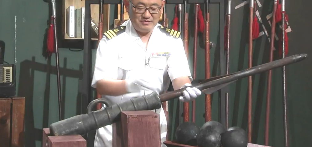 위의 사진이 황자총통이란 건데요 임진왜란 당시 조선 수군에서 제일 많이 사용하던 대포로 보시면 되십니다. 포 앞쪽에 긴 쇠가 날라가서 적 전함들을 부수는 효과를 내는 것입니다.