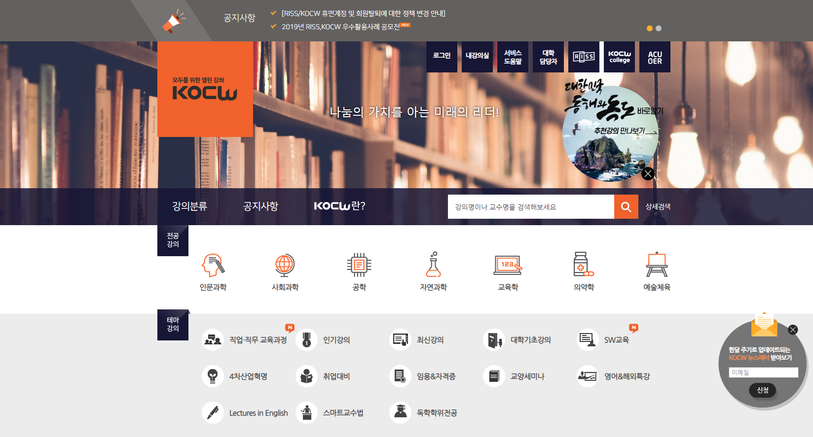 무료 인터넷 강의 사이트 1. KOCW